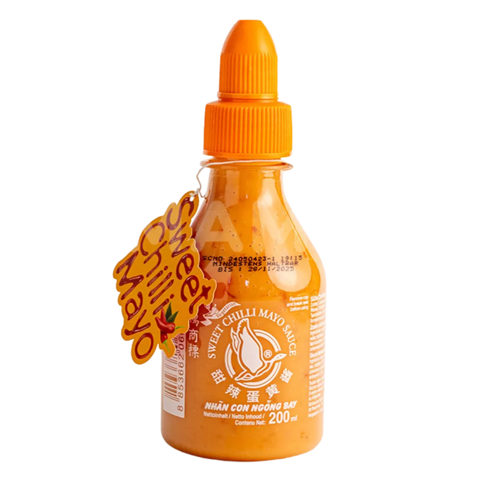 Sriracha Mayo ist eine cremige, leicht scharfe Sauce, die durch die Kombination von Mayonnaise und der berühmten thailändischen Sriracha-Chilisauce entsteht. Sie verleiht Speisen einen unverwechselbaren Geschmack und ist ein beliebtes Topping für Burger, Sushi und Bowls.