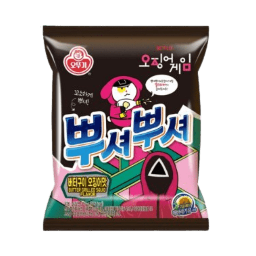 Der Ottogi × Netflix Squid Game Ramen Snack vereint zwei aufregende Geschmackserlebnisse aus Korea in einer Tüte: Buttrig-würziger Tintenfischgeschmack und feurig-scharfe Umami-Würze – inspiriert von der weltbekannten Serie „Squid Game“. Diese knusprig frittierten Ramennudeln sind sofort verzehrfertig und eignen sich perfekt als Snack oder crunchy Topping für asiatische Gerichte.